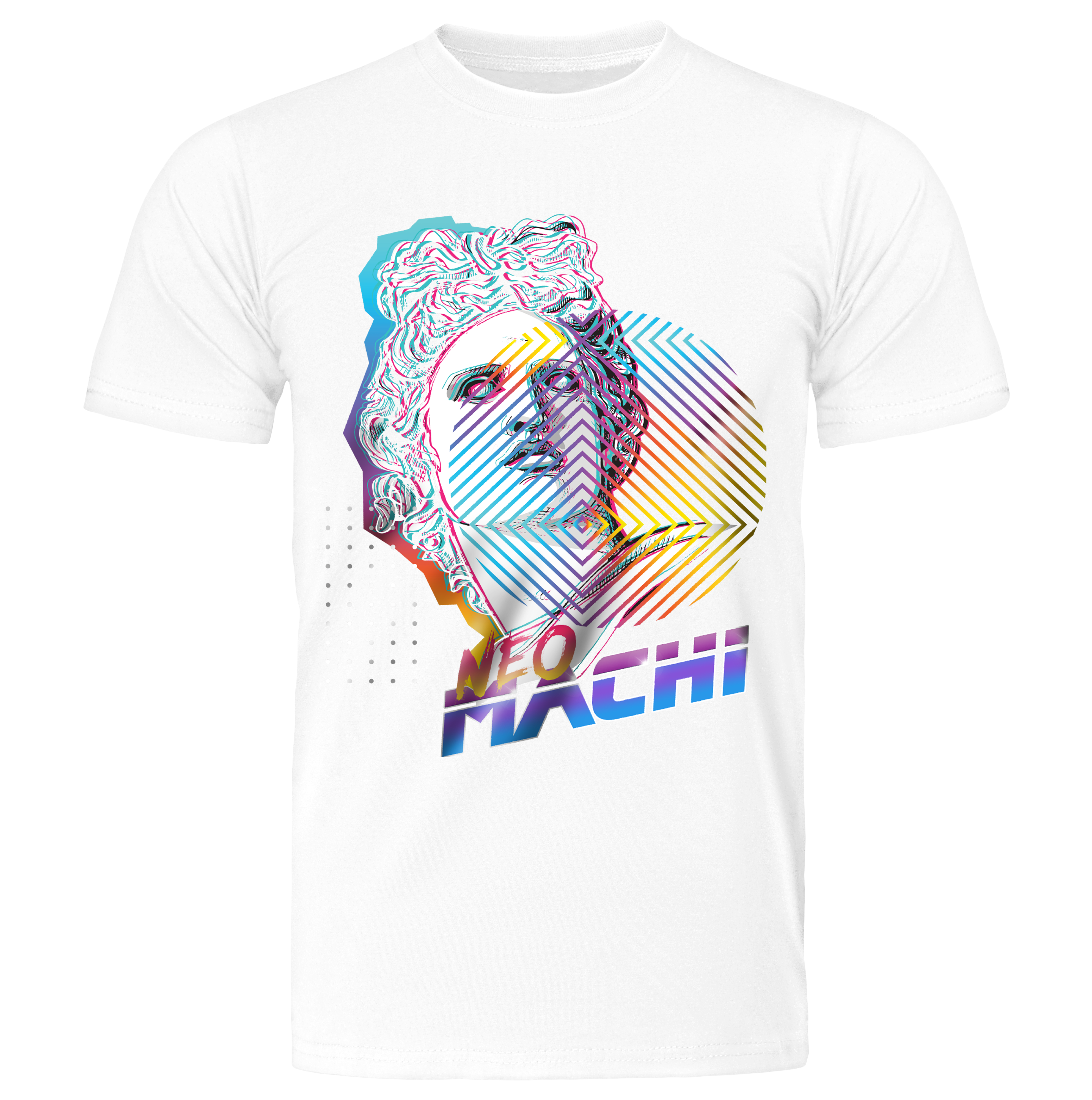 Let's rock that 80s vibe with our retrofuturistic DEBIDO! It has color, a vaporwave vibe, and last but not least, it has David. Feel the twist between centuries and add that classy renaissance sparkle to your artsy look. This design is also available in a hoodie version.