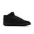 Constructed from a blend of leather and synthetic leather, the upper offers durability and structure reminiscent of classic basketball footwear. A padded mid-cut collar enhances comfort and ankle support, making this sneaker ideal for everyday wear. The monochrome black finish adds a clean, understated aesthetic that pairs effortlessly with streetwear and casual outfits.